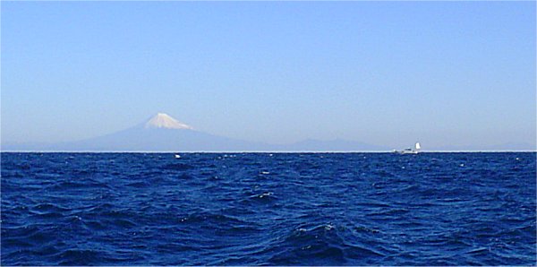 富士を眺めながらの釣り。これだから駿河湾沖釣りやめられません。(^o^) 白いスパンカ=ネプV艇です。