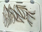 | 登り本鰹は姿も見せず、メジの入りは早かった。初夏の小物はなんといってもキスに限ります。 | |||