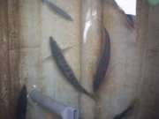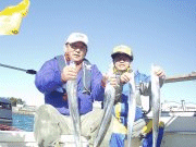 2003年釣り始めは焼津小川港沖の太刀魚を狙いに、釣友奥野氏と朝方7時出港。北西の強い風に港を出られるか心配したものの、出ると以外にも海面は穏やかだった。走る事20分ポイントへ到着、今朝も居ます居ます遊漁船にプレジャーに手こぎ?、凡そ30艇ほど。 |