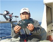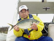 午前中に低気圧の通過ありとの予報と凪は良いもののいやな西風が吹いている為、またもや御前崎沖を諦める。久々に近場の大井川漁礁にてアジを狙うことにした。 |