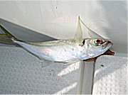 今日は予報からみて休みと決め込んだ。が、7時過ぎネプさんから携帯メールが入り御前へ向かっているとの事、凪も問題なしとか。急ぎ追いかけ御前へ向かう。 今日は縞鯵専門とし他の仕掛けは一切使わない思いでアンカーを打つ。数投目、いきなり左舷竿が海中へ。ヨッシャヨッシャ!と思いきやなんと痛恨のスッポ抜け。更に一時間、今度は置竿にしていた右舷竿が・・・が、こちらはハリス切れ(>_<)。その後しばらく当たりが遠のき粘ること2時間半。 今度こそ!やおらラインを持っていくわ、竿はグイグイと絞り込み竿の半分は海中に入りっぱなし、ヘッヘエ〜、なんという快感(^o^)。今度は慎重に駆け引きすること2〜3分、ようやく巻き上げが効きコマセ籠が見えた瞬間、ブッチン!。又もやハリス切れかよ。(-_-;)でも姿は見たぞオ〜、縞の奴。 エンデバーYさん直伝の細糸仕掛けとシャックリ釣法、確かに食いは良いですが取り込みがヒジョーに難しい〜。(^o^) 本日は試し打ち、当たりがあっただけ良しとしましょう。次回に期待として4Kgのコマセを打ち終え上がりとした。 |