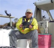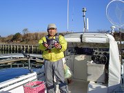 友人Mr.Terryが明日アメリカへ帰るのでナンとしても良い釣果を土産話しに持たせたい、と自らプレッシャーをかけ気合の出港。北西の風が強く吹く中、御前へ50分程かけて毎度のポイントに到着。8時近いのに他にボートが居ない。この波浪で皆さん様子見をしているらしい。早速アンカーリング、良い場所に留められました。潮は正潮でそこそこ流れていて爆釣の予感が・・・・(^o^)。 コマセタイム30分後、初のあたりはMr.Terry。竿をグイグイ海中に引きずりこむ。シメシメこれは本命か、と思いきやナンと上がってきたのは38cmのイシガキダイ。続けざまに本命縞鯵が(ヤレヤレ溜飲が下りました)、更にメジナが入れ食いとなる。その後、風が止まりベタ凪となるとパッタリと当たりが遠のく。御前に見切りをつけ笠松からツモリへと転々として真鯛を狙うもそうは問屋が卸さなかった。アマダイ、イトヨリ、トゴットをそこそこ追釣して12時上がりとした。Mr.Terryの土産話しは十分にできハッピーハッピーの半日でした。(^o^) (御前崎港から吉田港にかけて臨検がありました。) |