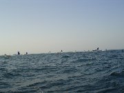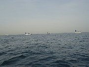 寝過ごしました。ポイントに入ったのは7時近く、今朝は久々のネプ艇と先週来のシーホース艇(ファルコンさん)と連なってのファイト。 西の風強し、水温17℃、澄み潮流れ無しも、多少南西へ流される。反応が全く無し。一時間かけて凡そ300mを流される。付け餌が毎度上がって来る最悪のコンディション。「こんなんじゃ〜しょんないじゃん!」(^o^) 11時過ぎ、南西15mの強風に白波&しぶきが飛び始めたのを見て早々と上がりました。明日、リベンジじゃ〜。 |