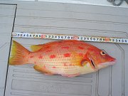梅雨の合間、マリーナ僚船Y938さんとカド根へ向けて六時出発。風もなく凪も上々で小一時間でポイントに着く。途中のアラコでは相変わらず遊漁船で賑わっている。 早速仕掛けを投入するも東へ2ノットの潮にあっという間にポイントを通過。小潮・やや濁り・水温26℃超に苦戦の釣行となりました。それでもポイントを通過する毎にメバルやらイサキやらメジナやらがヒット。5〜6流し目か、突然ズ〜ンっと竿先が重苦しく海中へ・・・・・・アいや根がかりか?と思いきや、なんと揚がってきたのは十数年振りに顔を見ますキツネダイ。こいつはネプさんのオイ大へ早速申請しなくては。(笑) 三時間ほど遊んだ後、気になるアラコへ移動。ここでも潮は早く遊漁船がひっきりなしにポイント移動を繰り返している。この状況ではチョイト入り難く御前へ移動しアンカーリング。ここでは沖とは全く逆の風無し潮留まり。アタリが全く無いままに昼前、上がりとしました。 |