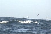 今シーズン初のトローリング?石花海(合ノ瀬エボシ)へカツオの様子見に聖艇と五時半桟橋を出発。出掛け西風が強く先に出ていた鼠さんに電話を入れるも問題無いとのこと急ぎ東向けへ舵をとる。 途中、大井川沖辺りからやけに鳥が東へ飛んでいく。後を追いかけると居ます居ます北堆南西界隈の3〜4km四方に鳥がビッシリ、海面にはイワシを追ってのサバ鯖サバ鯖・・・・・・。その下にはきっとメジやカツオが居るんでしょう? まずはドラペンで入れ食い状態。土産に3匹ゲットしたところでシングルに変えフック&リリースでしばし楽しむ。オヤオヤ、ネプV艇も鯖の入れ食いをおっ楽しみではありませんか。その後、イカを狙うも風にあおられ釣りになりませぬ。九時過ぎ再度鯖の入れ食いを遊んで十時、早々の上がりとしました。 |