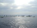 三連休最後の海の日、ようやく凪に恵まれカツオを求め久能経由で西伊豆沖へと遠征に聖艇と出発。途中、焼津沖でジムニーさんとお初顔合わせ、ご挨拶もそこそこに北上を続ける。 久能沖に着くも東沖がやけに賑やかい。即転舵し土肥沖へ向かう。オ〜!居ました居ました夏の名物「カツオ追っかけ船団」ざっと50〜60いやいやもう少しいるかも。 オヤオヤ船団の中にFalconさんが、アイやMaboさんっちも。いずこも当たりが渋いらしくなかなか歓声が上がりませぬ。小一時間、船団にお伴するも当たり全く無し。マリーナ僚友の無線で波勝へ下るもここでも当たり無し。トローリングに切り替えロボ回りを流すと早速シイラがヒット。型はメーターに届かずイマイチですが一年ぶりに強い曳きを堪能。その後、合ノ瀬へ向け流しながらシイラを追釣し桟橋へ戻る。 |