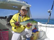 台風23号のウネリ入ってきている中、昨日は相良沖でUターン、今日は風が無いだけザワツキのない海面を観て大井川沖へ向かう。 それでもウネリ波で3mはあるのか、かなりグラグラきている。波に平行となる転舵はヒヤヒヤモノです。(-_-;) 大井川港沖合い5マイル界隈を流すもヒットするのはシイラのみ、それも小ぶりのペンペンサイズ。水温24℃とかなり下がってきたもののまだまだ暖っかいです。10時過ぎ、北から東に変わり10m近い風に海面はますますざわついて来て立っているのがやっと、早々に撤収としました。 |