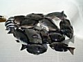 潮が全く流れていません。水温14.4℃にやや濁り潮で厳しい戦いを強いられました。1時間、餌取りはいるものの雑魚のベラや幼メジナにネンブツのアラカルト。(-_-;) 3時間が過ぎた一時、風が治まり竿の踊りがなくなった途端に大きな当り、先ほど東隣りでファイトしているネプ艇Vが縞ゲット、こっちへ廻って来たかと内心ホクホクで慎重にやりとりしたもののJMXお得意の石鯛が・・・・・。まぁ-いっか〜。昼前4.5Kgの撒餌の完了で上がりとしました。