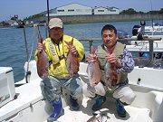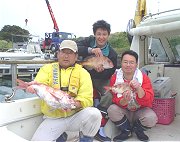 昨日同様のカド根真鯛狙いに増田氏を同行して5時桟橋を出発・・・・の予定が、昨夜の予報に反して沖は8m強の南西の風。式根向けで先に出ていたスキッドさんに連絡するもツモリ界隈で待機中とやら。 30分ほど様子見の後だんだん凪ぎる事を信じて聖艇と出港。南からのうねりと相まって走りづらいものの80分かけてポイントに到着。御馴染みの遊船に混じって早速仕掛けを投入。一投二投三投と投入毎にイサキやらヒメやらがヒット、退屈しない釣りになりそうです。 9時半過ぎ、緩い潮が更に完全な潮留まりとなり食いがパタリと止まる。その後1時間過ぎに再び潮が動きはじめると当たりも帰ってきました。11時半過ぎ、沖上がりするまで本命真鯛がポツリポツリとまずまずの食いをしてくれた半日でした。 本日はネプさん、スキッドさん、お丸さん、ファルコンさん、咲豊丸さんと繋げていただきありがとうございました。沖での情報交換は心強いものです。 |