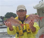 GW初日の出撃は久しぶりに馴染みの二人が同釣してカドへ朝一向かいました。曇天ながら東からのそよ風の良凪で絶好の釣り日和。潮は無いものの反応は濃く、朝一の一投目、小山氏の左舷竿が踊り出す。これは幸先の良いヒットが、続けてトランザムから後方に出している私の竿にも大きな当たりが。曳きも強く三段引きどころか上がってくるまでビシバシ引きまくりました。 しばらく当たりが止まった三流し目、今度は右舷竿の増田氏に・・・「オンや〜、どうも小山君とオマツリかな?」いやはやオマツリながらもしっかりヒットしてます。「???こやつ針を2本くわえてます。一体どちらの獲物かいな?」 八時過ぎ、南西に移動してレンコの数釣りを楽しみました。その後、西の空がにわかに黒くなってきたのを観て十一時、沖上がりとしました。まずはGW出足好調の釣果でした。 |