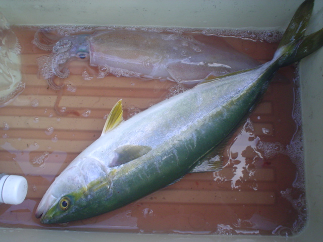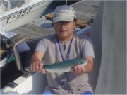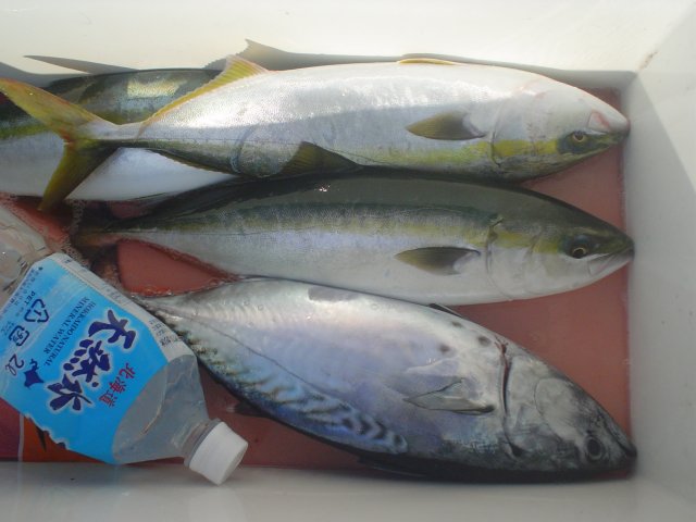 僚船「聖」とワラサの賑わいを見せている東海根へ、協定七時の朝一が勝負とネプ艇より聞いている。現着七時十分と遅刻、30〜40艇の大船団の中に入り込んでのJrの第一投、いきなり竿先が海中へ持っていかれる。心の準備の無いまま、やや慌てふためく。(笑)小型イナダながらも大漁を予期する一尾だった。・・・が? その後、打てども打てどもかすりもせず、一時間後、遊船全艇撤収、どこかへ散ってしまった。 その後、笠松へ移動するも当たり無し。続いて12m北西風の中、合の瀬イカ場へ移動。ここでも50艇を越す大船団。各艇小刻みに移動しての大苦戦。結局ヤリを一ハイ追釣にて昼前上がりとした。 |