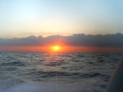 二週間ぶり、ワラサに成長したという毎度の東海根へ六時過ぎ桟橋を出る。途中、ウタレ太刀場西側を通るも今朝は随分と寂しいほどの遊漁船の数、10艇ほどか。 相良沖を過ぎる頃から急に北東の風が吹き荒れ始め東の空には暗雲が立ち込めている。外洋にでたら益々の北の強風に、時折サーフ状態となるもポイントを目指した。 なんとか東海根に到着するも15mはあるか北東風に海面グラグラ。5艇いる遊漁船も悪戦苦闘、キールまで見えるグラグラに釣り客も体制維持に必死。やむなくトンボ返り、帰りは真横からの東風、凪なら10分程で湾内へ戻れるところを何と40分かけての命からがら航走でした。久しぶりの「ふぃ〜っと!」でしたね。(笑) |